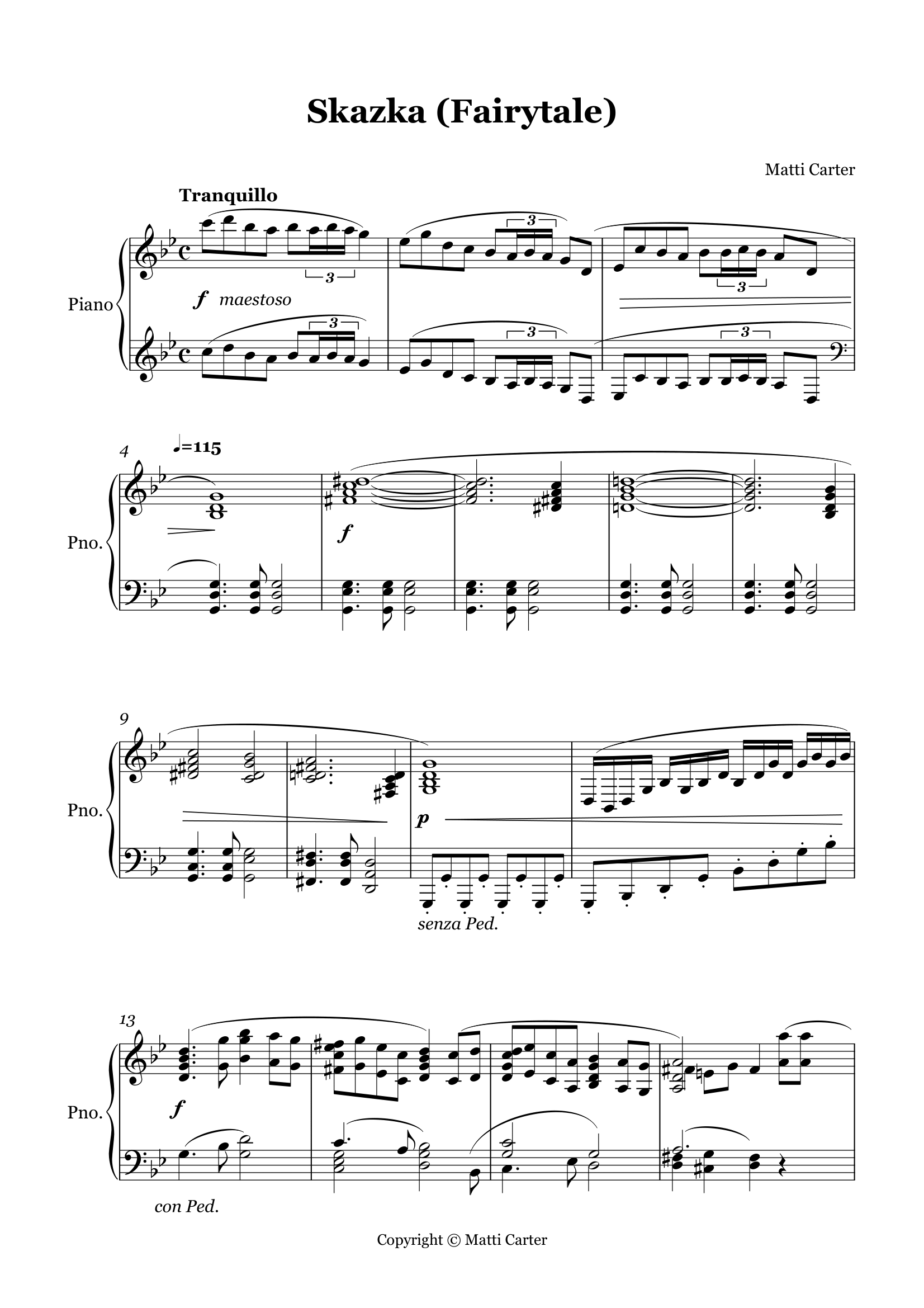 Based on a violin composition I wrote at the age of 16, this piece later evolved into a piano work. The music evokes a fairytale-like atmosphere, with hints of Russian-inspired motifs.